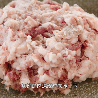 17、切一点肉末,然后腌制一下,抓匀(加入盐、椒盐、胡椒粉、生抽、耗油、葱花腌制)