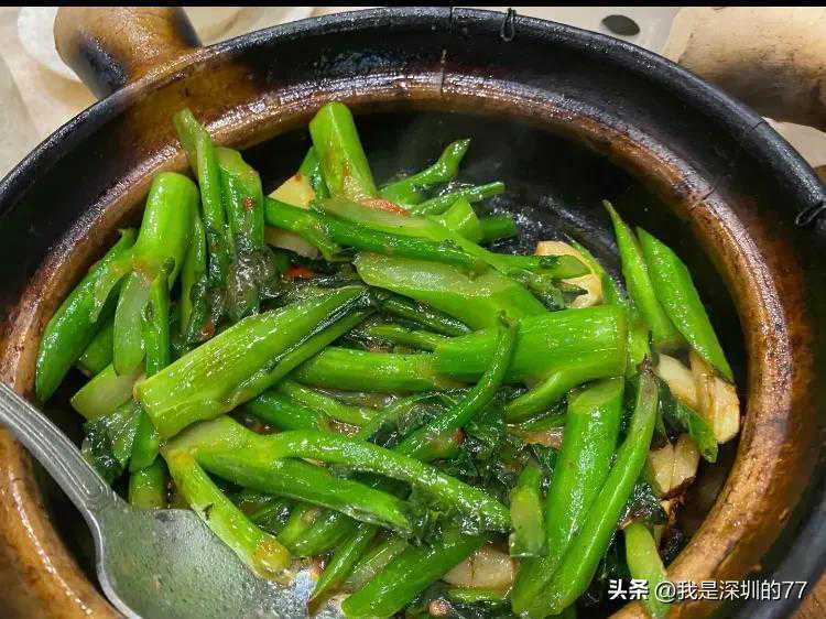 虾酱啫芥兰:芥兰鲜嫩碧翠,配合虾酱的咸香、在瓦煲的热力下一直散发出独特的臭味!实在太完美了,可惜山东的朋友却吃不惯这种食物。