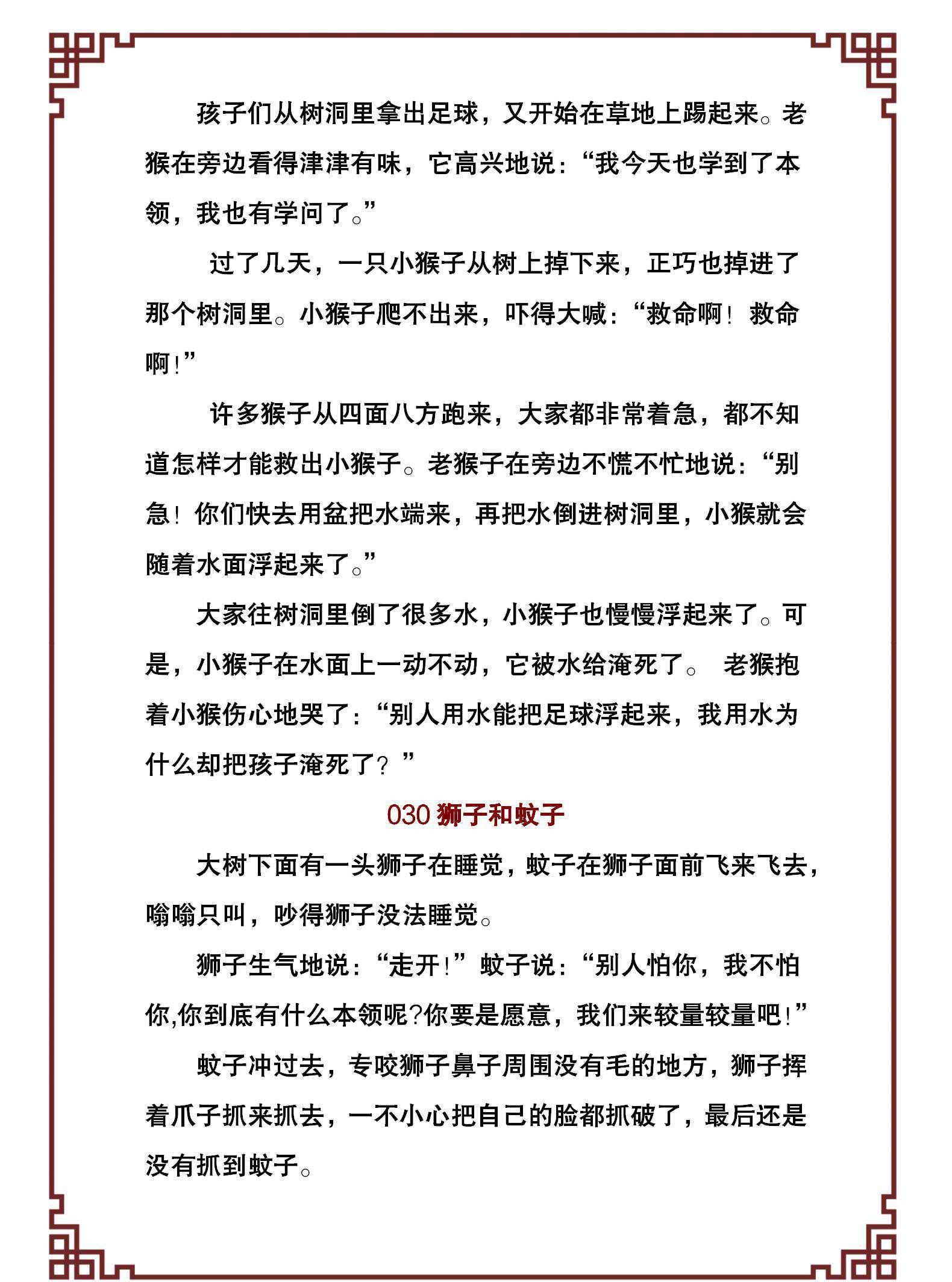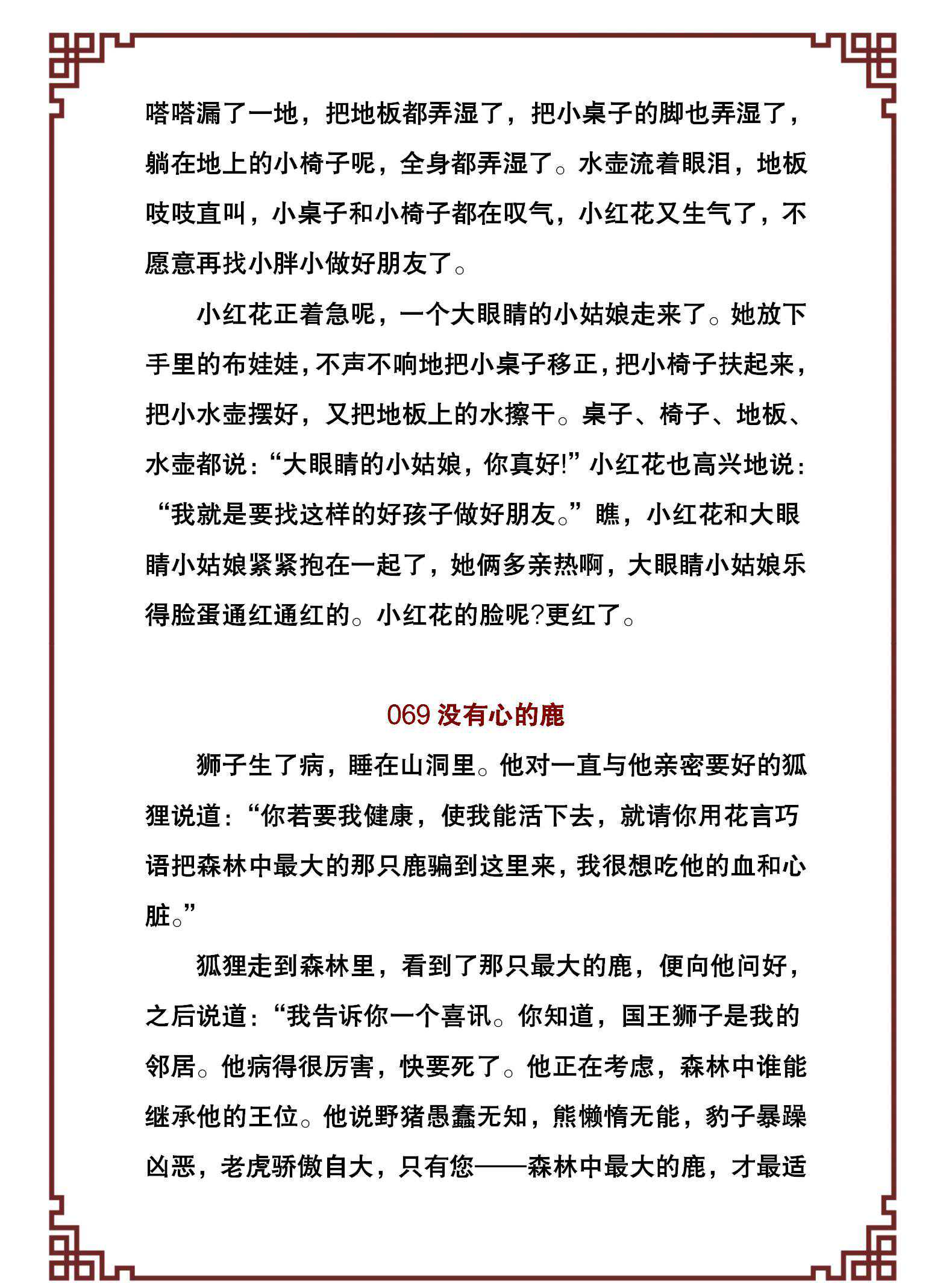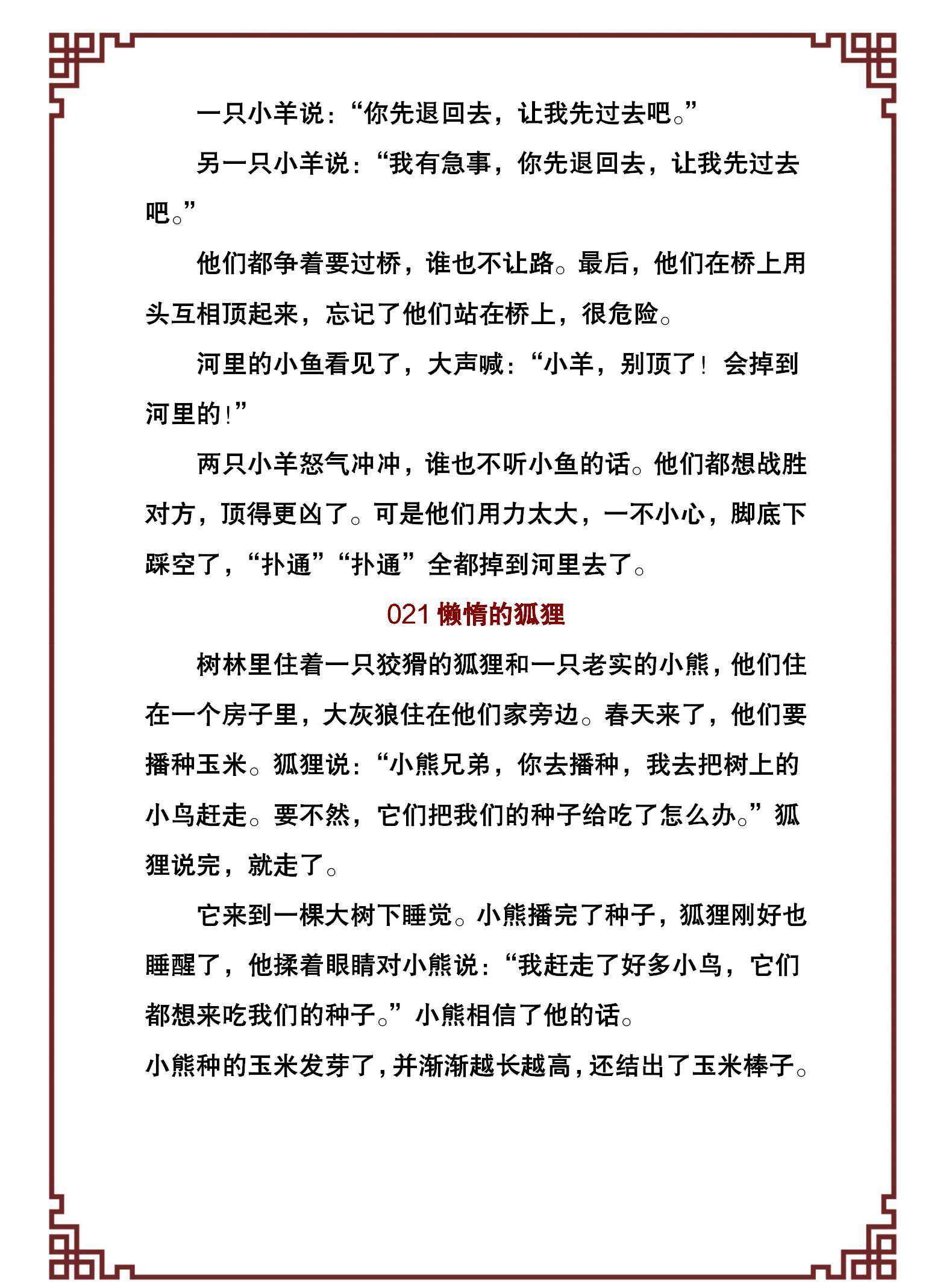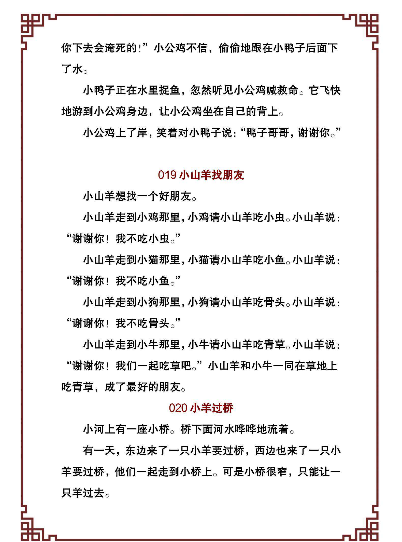 简介100个幼儿经典故事,激发孩子的好奇和学习兴趣,引导孩子爱上阅读故事可以激发孩子的好奇心,也激发学习兴趣,经典故事效果更好,家里有幼儿或小学生的家长们可以收藏保存,这100个幼儿精典故事,每天讲一个故事,讲给孩子听,为将来上小学奠定良好的基础,也为将来积累写作素材。100张图片,文章有点长,感兴趣的...