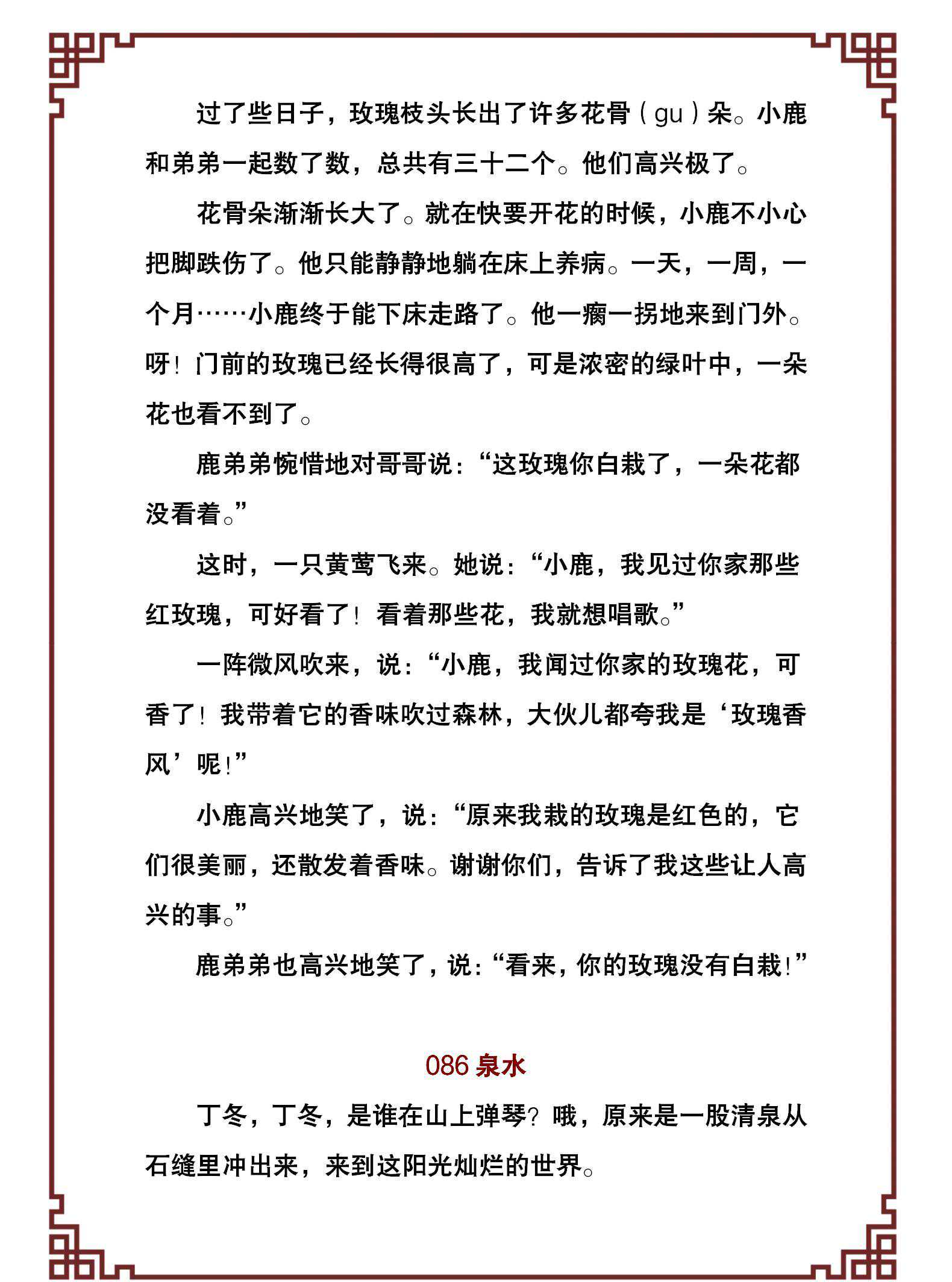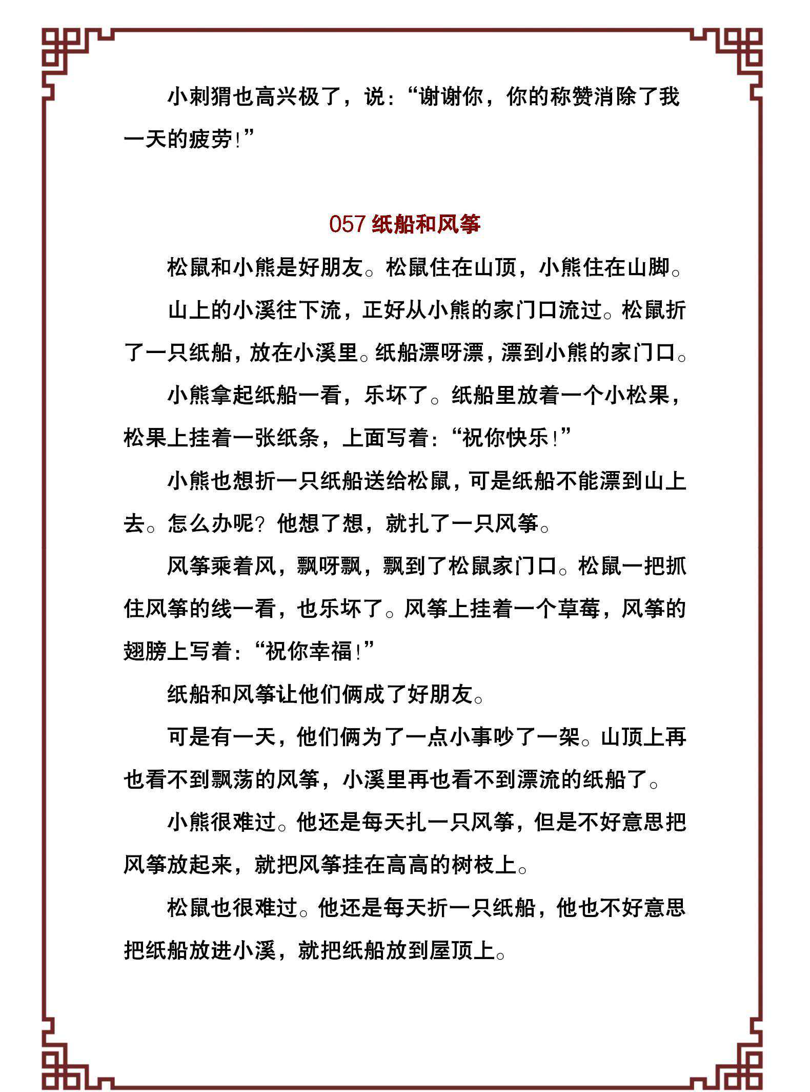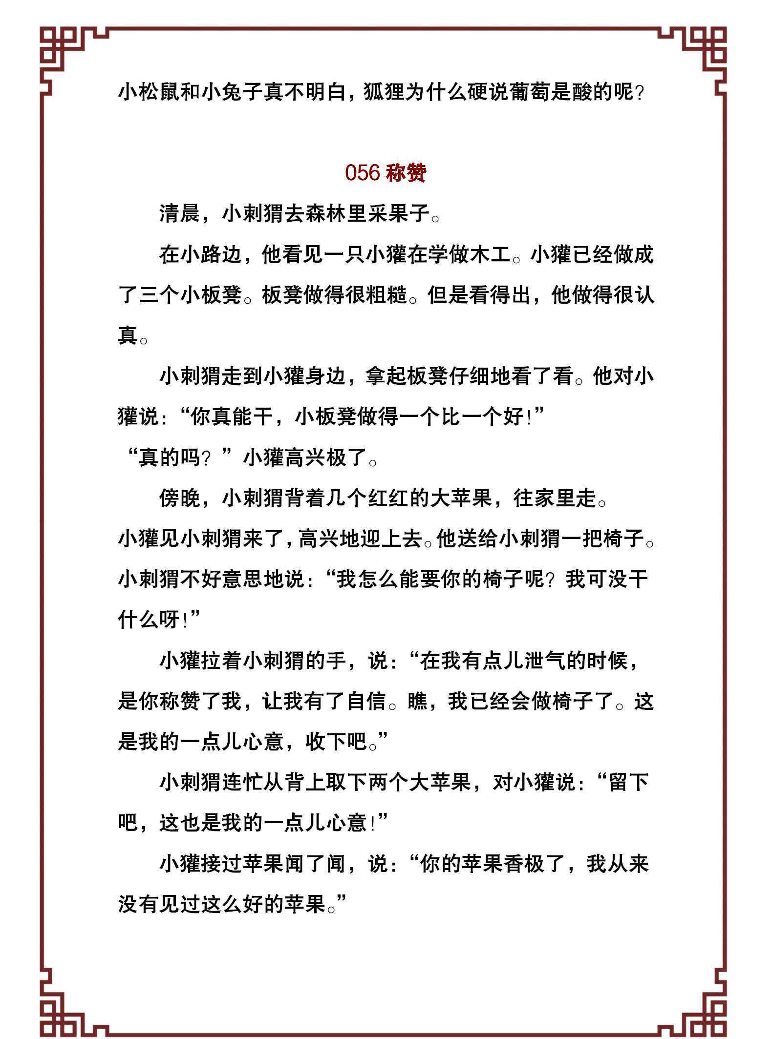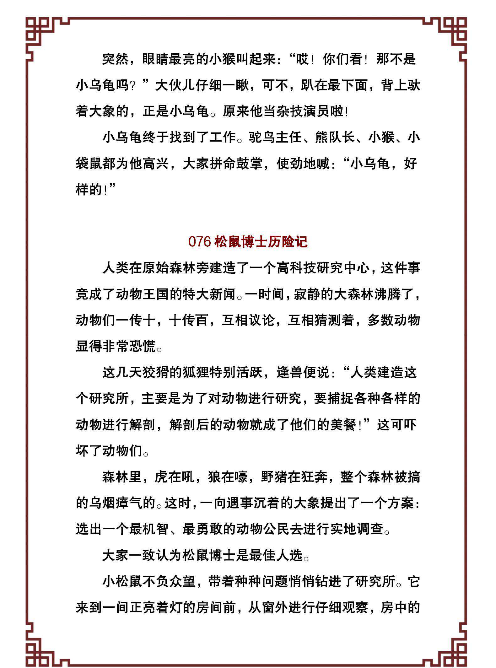 简介100个幼儿经典故事,激发孩子的好奇和学习兴趣,引导孩子爱上阅读故事可以激发孩子的好奇心,也激发学习兴趣,经典故事效果更好,家里有幼儿或小学生的家长们可以收藏保存,这100个幼儿精典故事,每天讲一个故事,讲给孩子听,为将来上小学奠定良好的基础,也为将来积累写作素材。100张图片,文章有点长,感兴趣的...