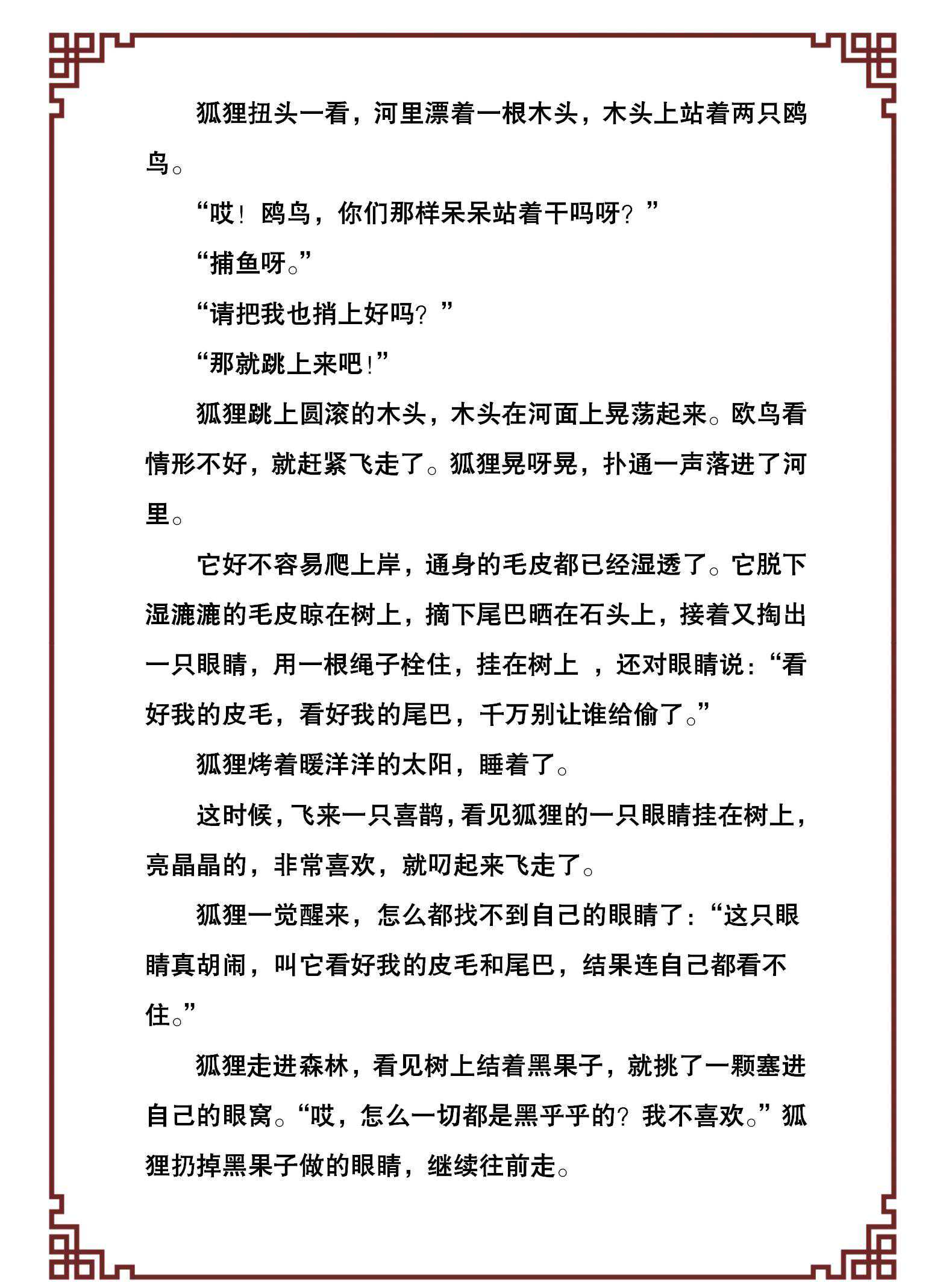 狐狸又笑着对乌鸦说:“亲爱的乌鸦,您的孩子好吗?听说你的孩子很可爱。”乌鸦看了狐狸一眼,还是没有回答。