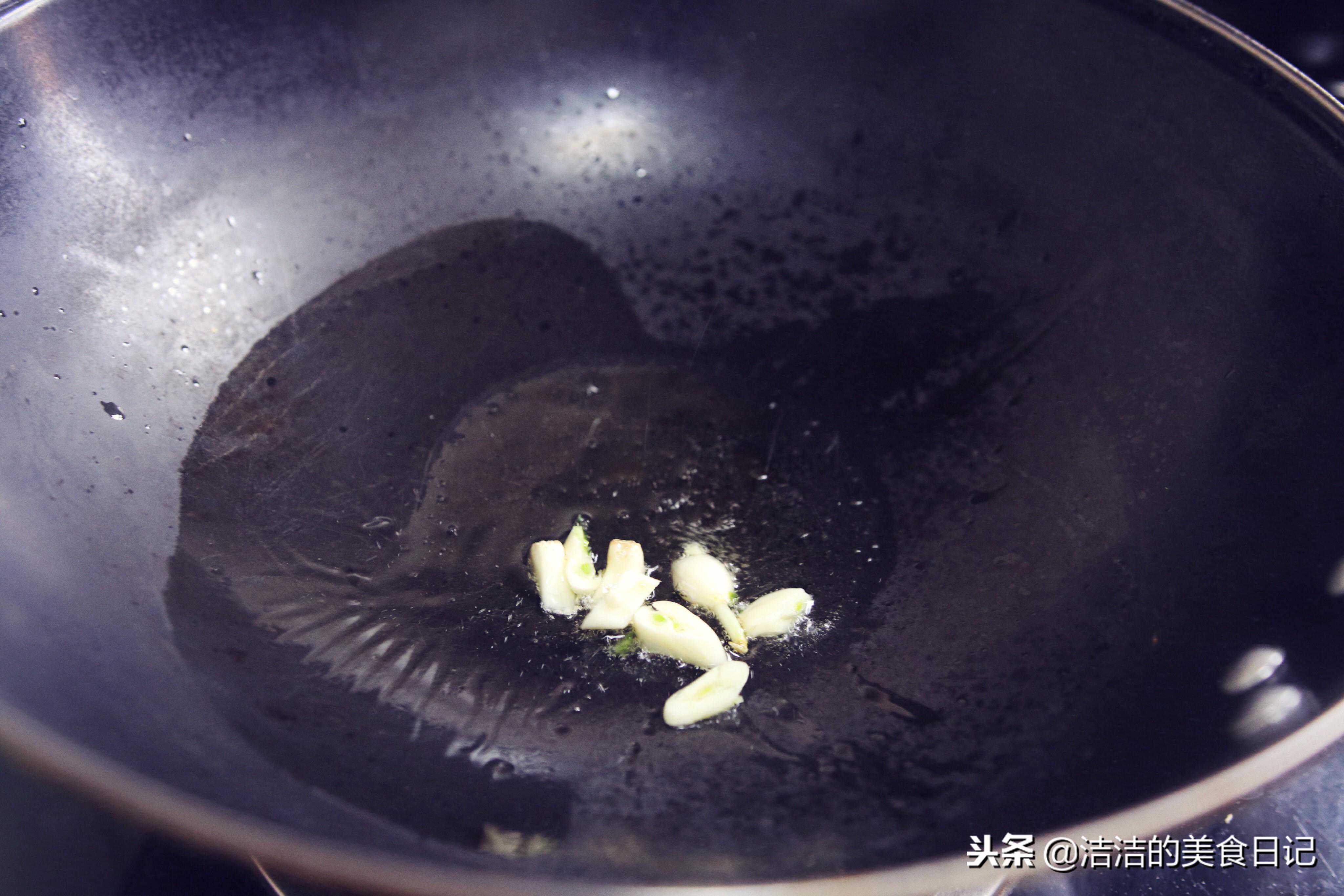 炒锅加热倒入油,放入蒜瓣爆香