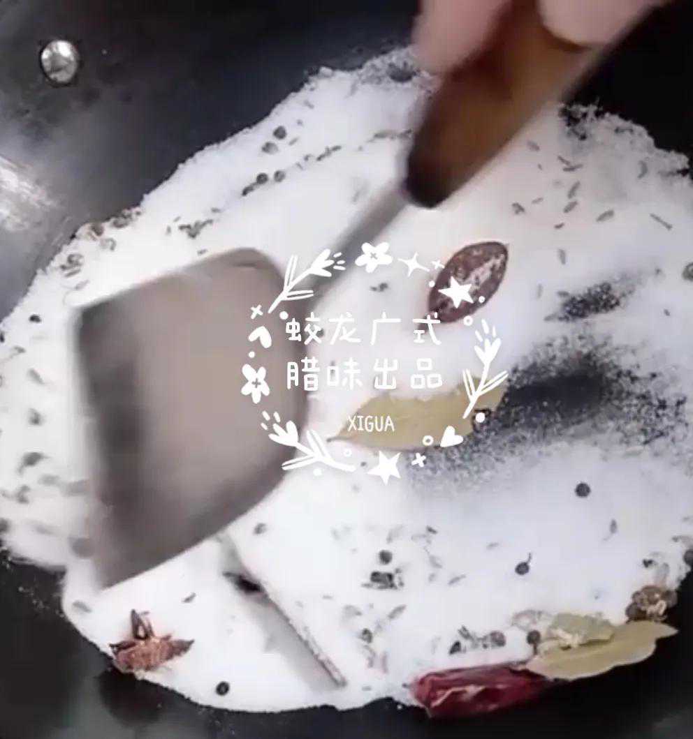 2.将盐和花椒八角香叶炒热,冷却后备用。