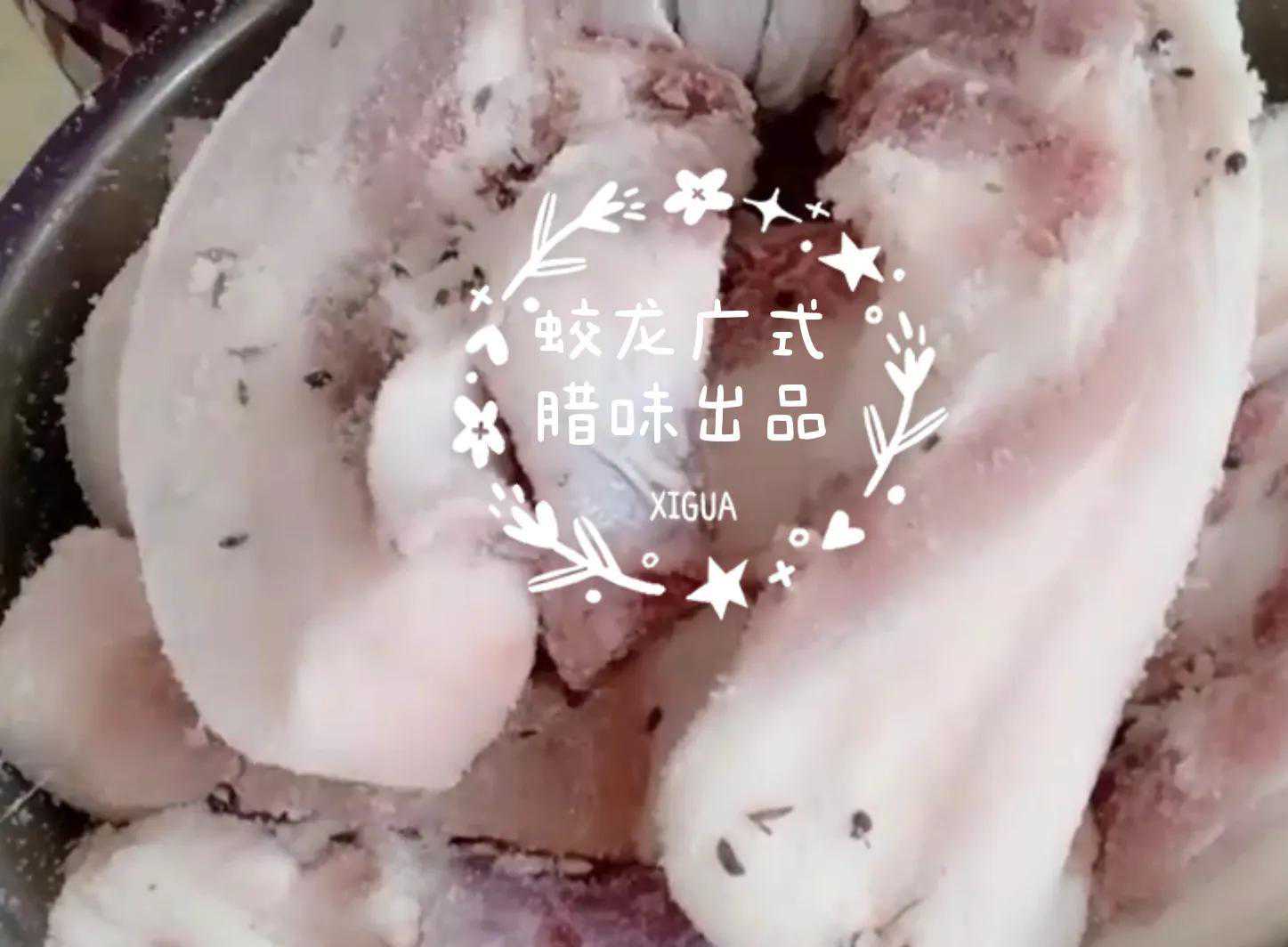 3.用盐将每条肉涂抹一遍,腌制两小时左右拿出。(五斤肉约三两盐左右)