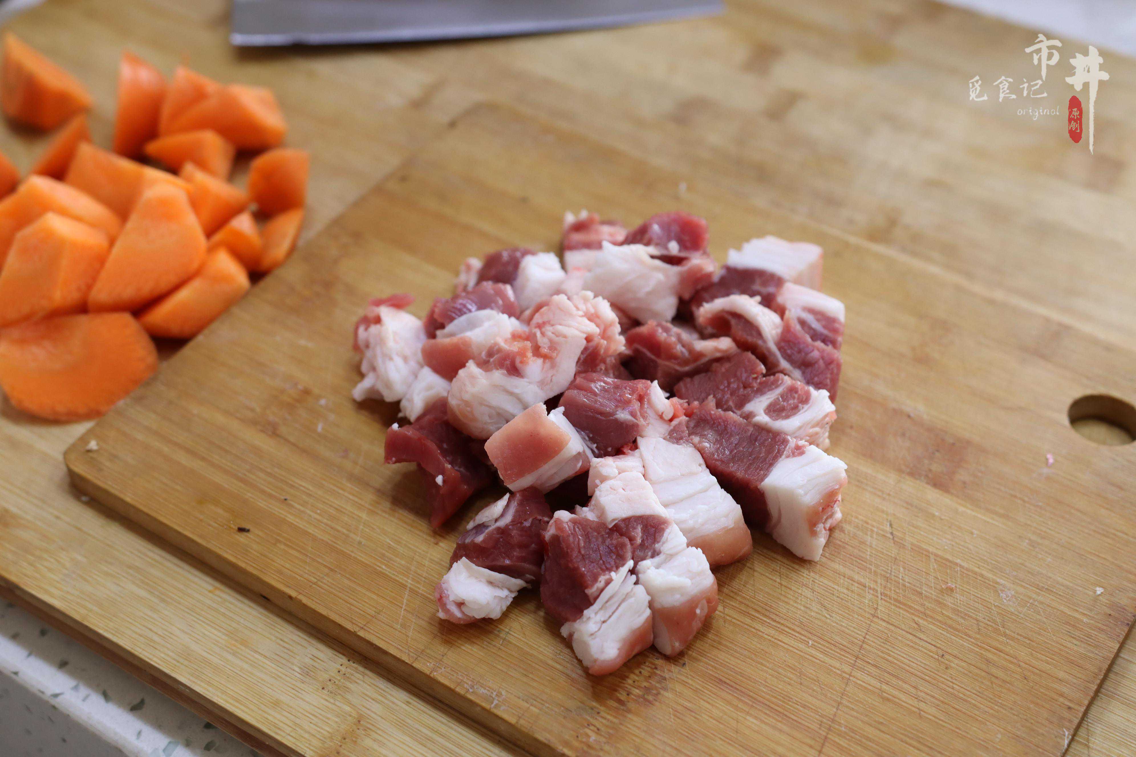1、想用羊肉炖出来白汤,就必须选用比较肥的羊肉了,不管是选羊后腿肉、羊上脑肉、肋排肉等都要选用比较肥一些的,和胡萝卜一起切大块备用。