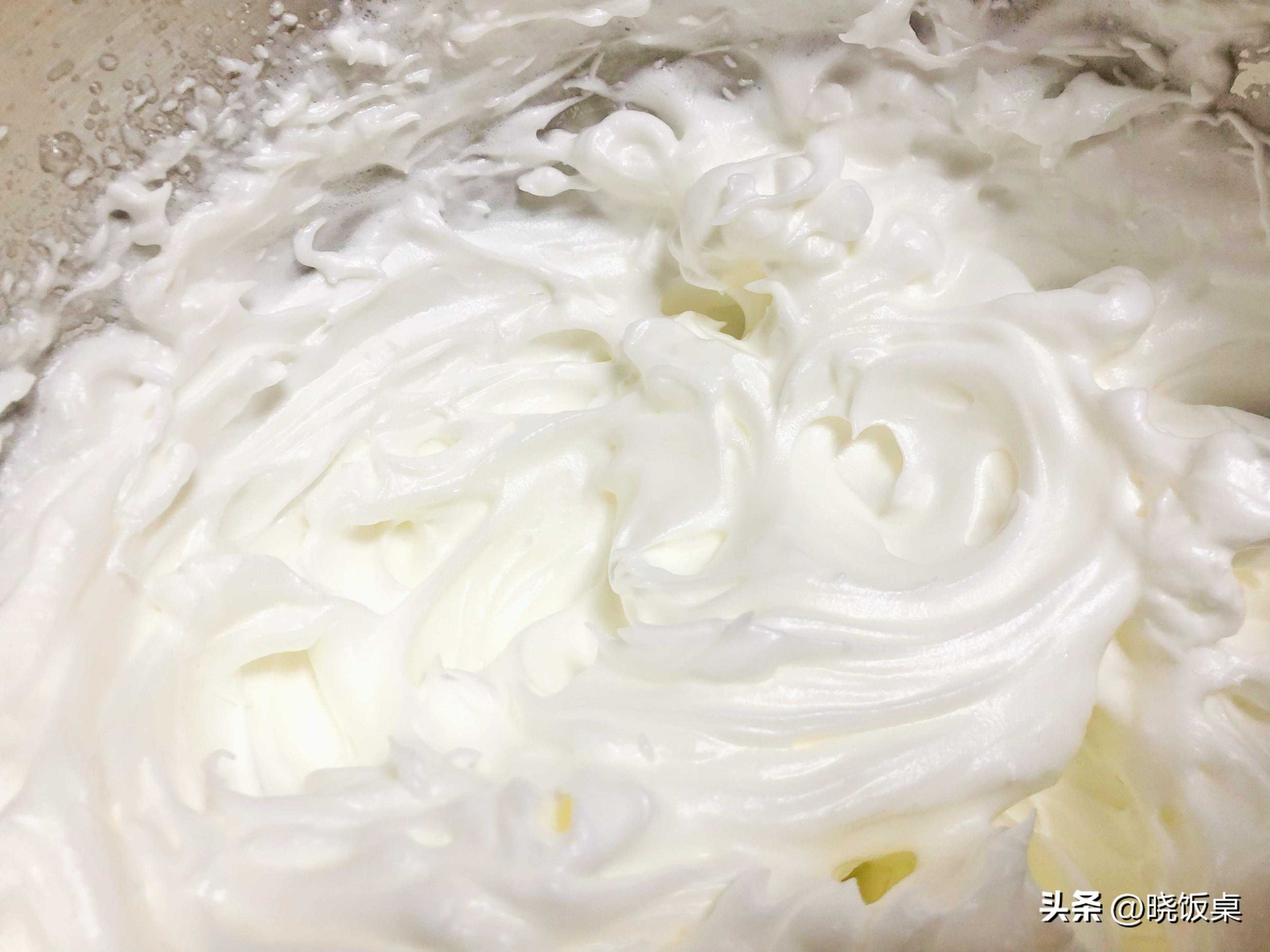 4、调面糊,先在盆中打入3枚鸡蛋清,接着再用打蛋器或3根筷子朝着一个方向打发,打发到能立住1根筷子不倒下,最后再加入1勺淀粉和半勺面粉,搅拌均匀。
