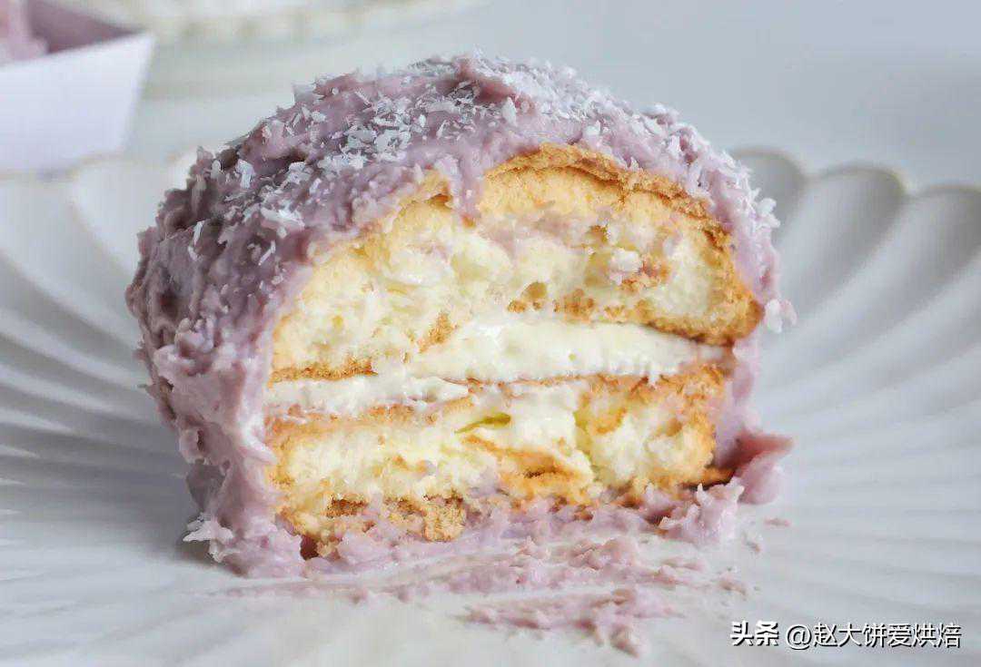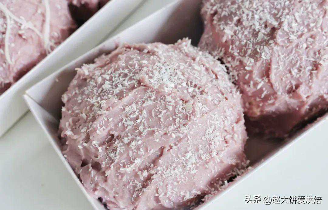 蓬松绵软的蛋糕胚裹满了粉紫粉紫的芋泥馅,奶乎奶乎胖嘟嘟的,表面撒上香香的椰蓉,中间还有香浓的奶酪馅,一口下去,简直太满足了,芋泥控的吃货被沦陷了。