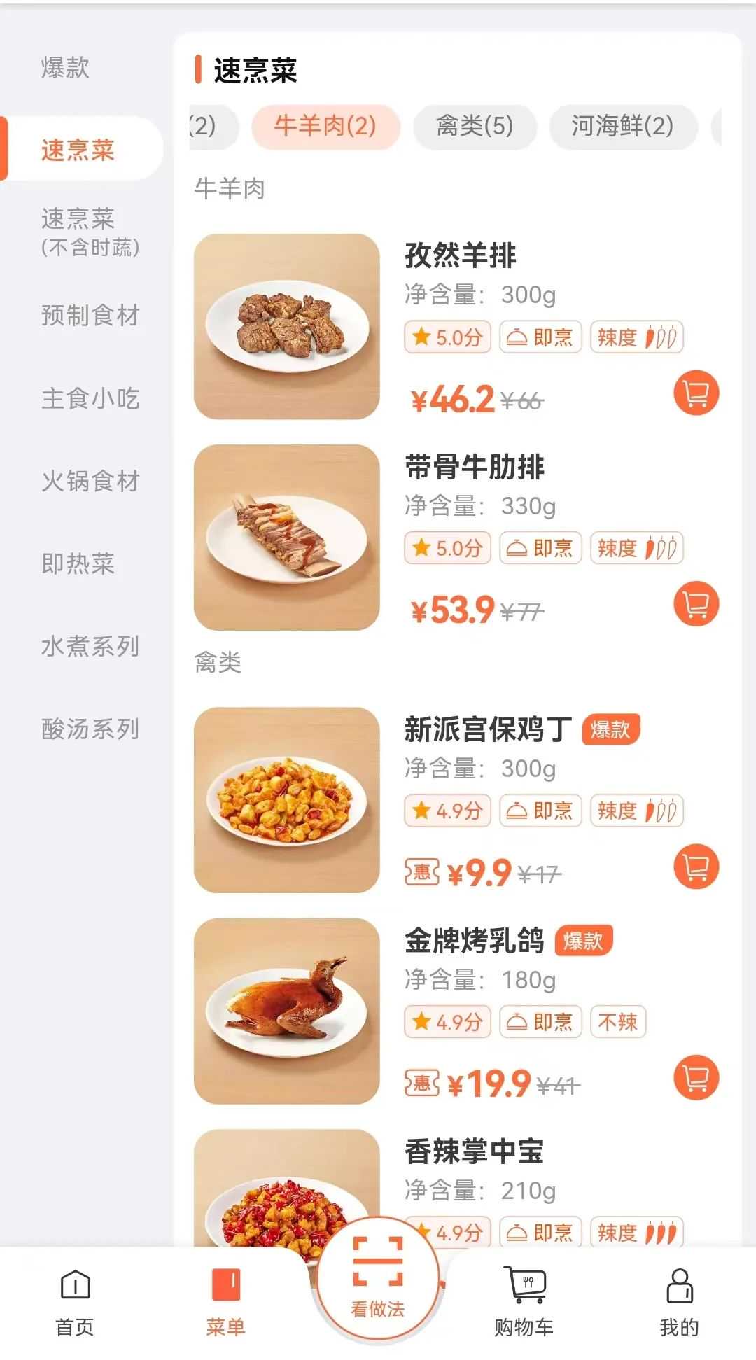 根据目标消费人群的需求和特点,舌尖英雄将产品形态分为预制食材和速烹菜两大类。其中,预制食材有预切割食材、基础腌制食材和深度加工食材等类别;速烹菜分为即烹类和即热类产品,能够满足不同消费者不同场景的烹饪需求。