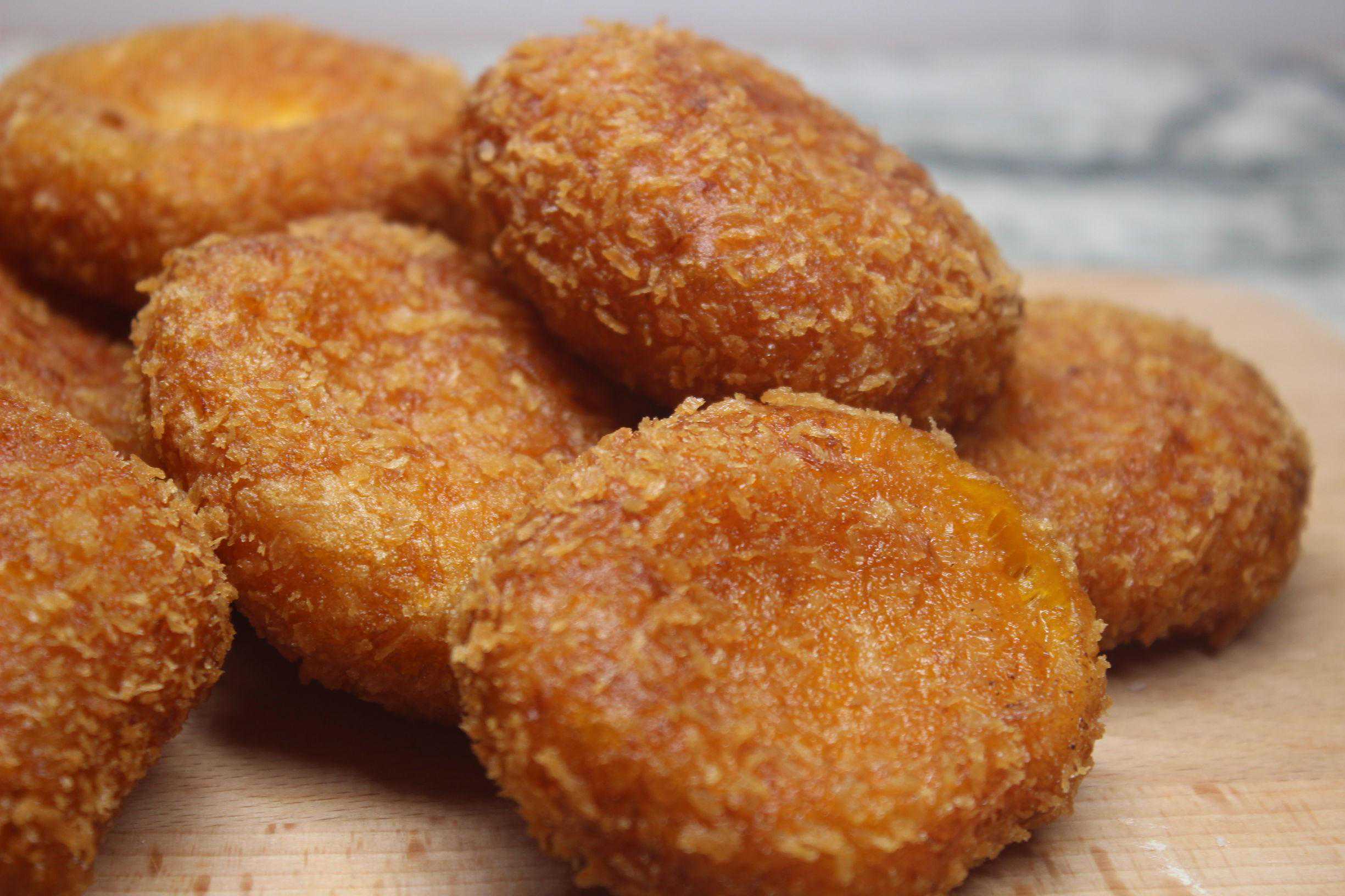 5、准备好面包糠就可以做南瓜饼了。