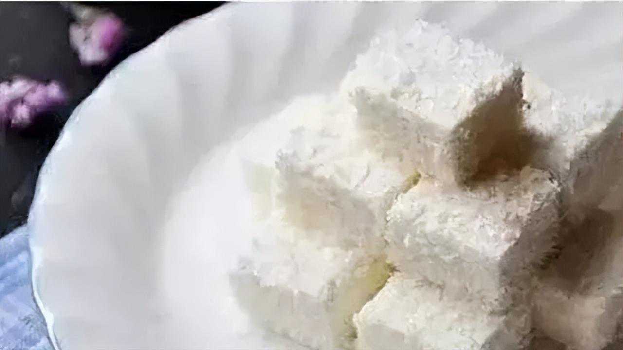 11.将冷冻好的奶糕从模具中取出沾上椰蓉即可。