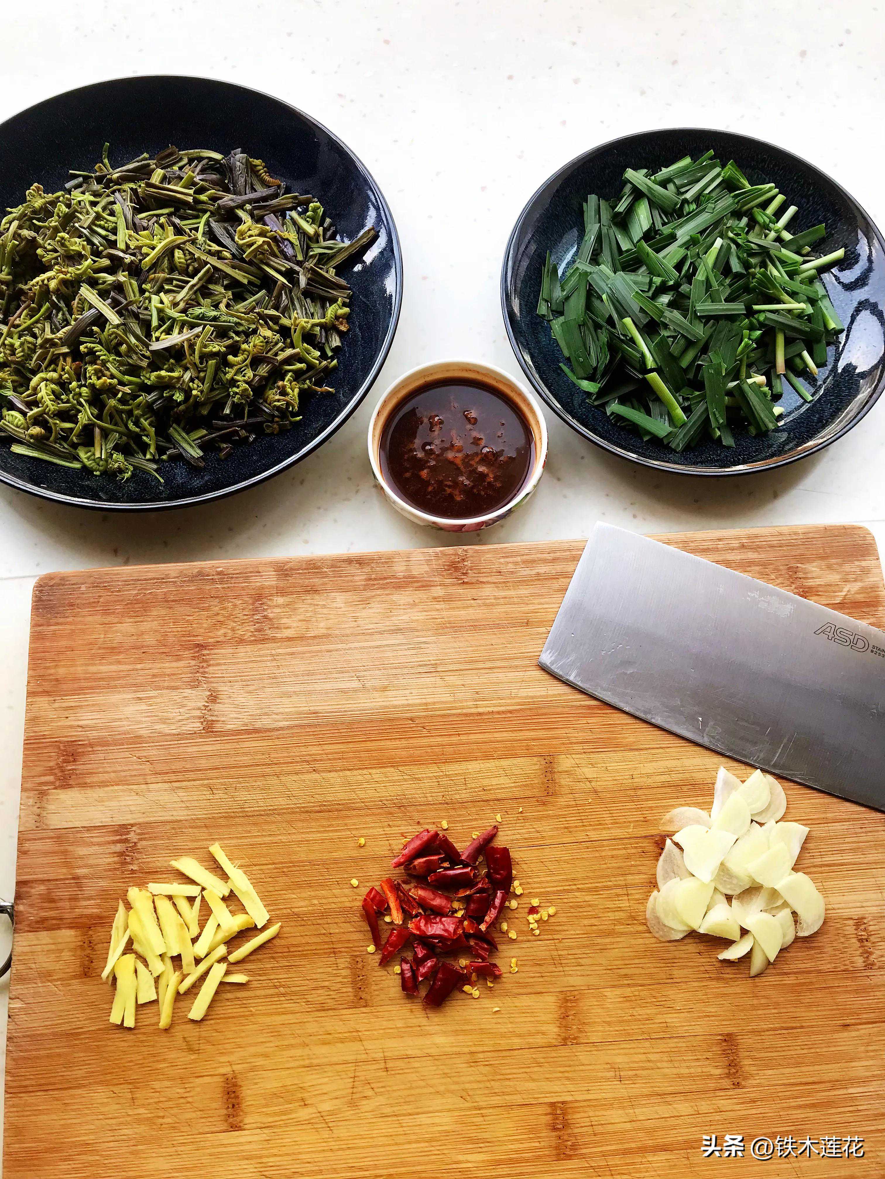 1、主料:新鲜蕨菜、新鲜韭菜适量。