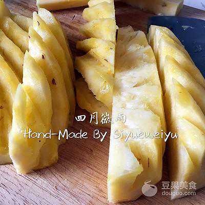 1、凤梨馅,盐8g加入纯净水内搅拌均匀,去皮凤梨1633g去心留肉