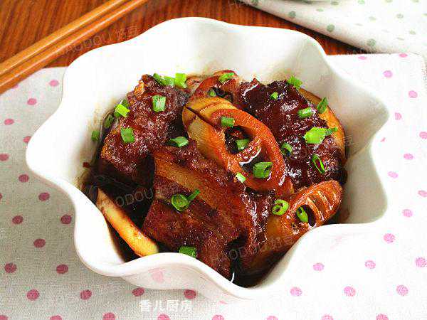 辅料;生姜片8g八角2颗蒜片8g小葱5g冰糖20g生抽40g老抽14g料酒20g