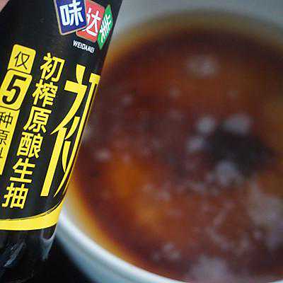 8、倒入1勺味达美初榨原酿生抽