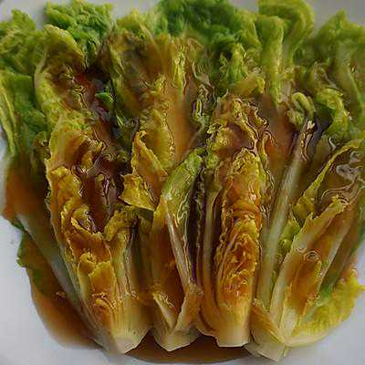 12、将蚝油调味汁淋在娃娃菜即可