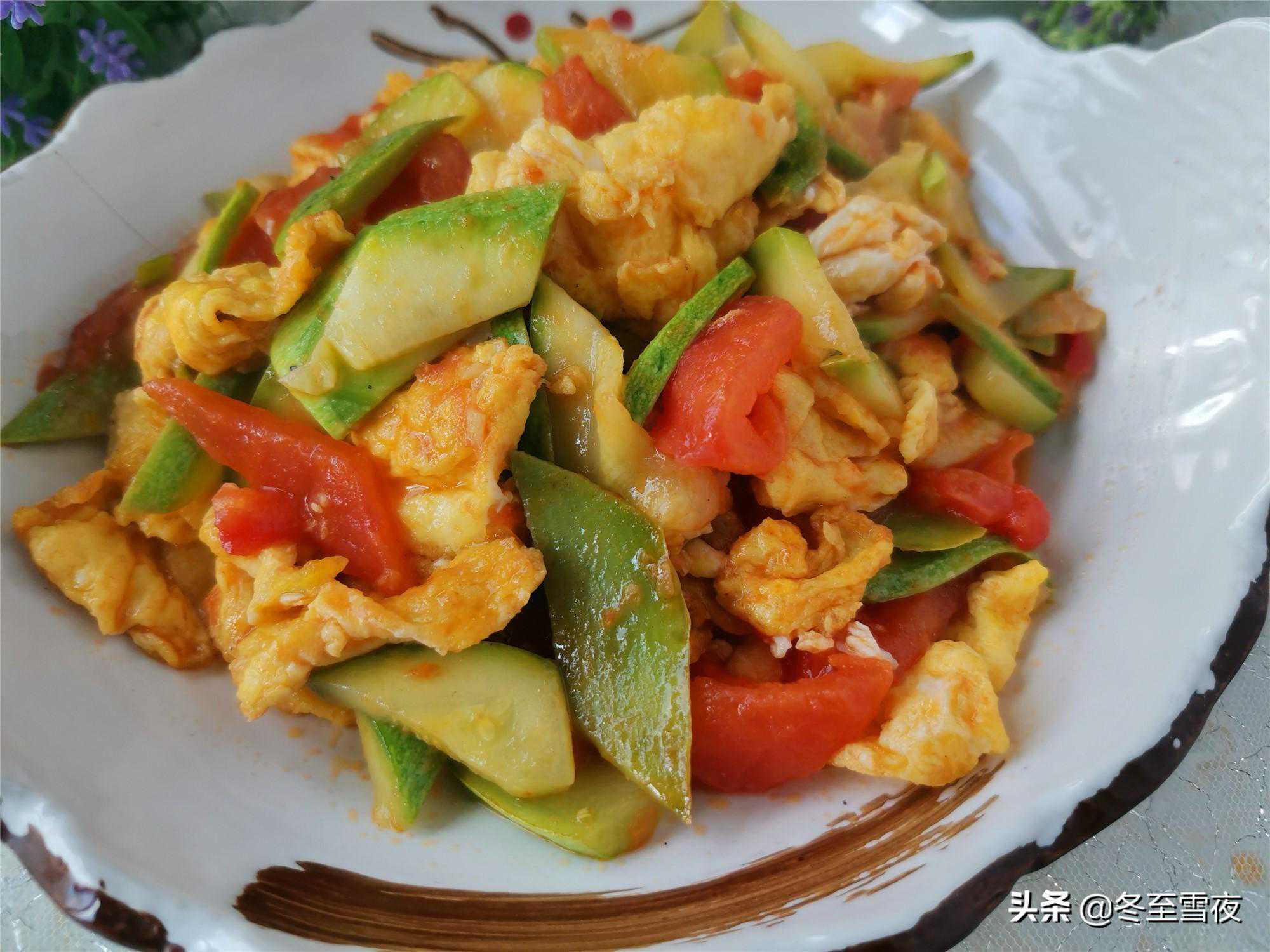 【番茄西葫芦炒蛋】所需材料:西葫芦1个、西红柿1个、鸡蛋2个、油盐适量、小葱1根、大蒜2瓣、