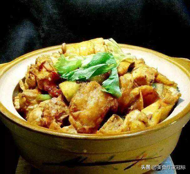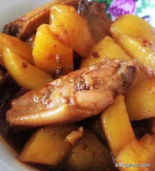 盖上盖子,转小火焖煮至鸡肉烂熟,出锅时撒些葱花即可。因为这里的配菜是土豆,就跟鸡块一起煮,如果放的是莴苣,就等鸡块焖好后再下莴苣煮至莴苣断生就可以了,因为莴苣是很容易熟的。