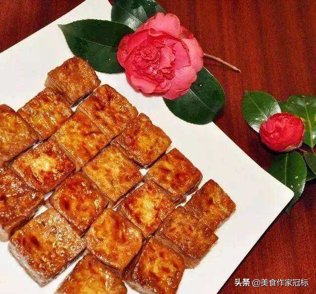 等油热时,把火调成小火,轻轻的放入豆腐。(放豆腐时不要怕,不会溅油。)