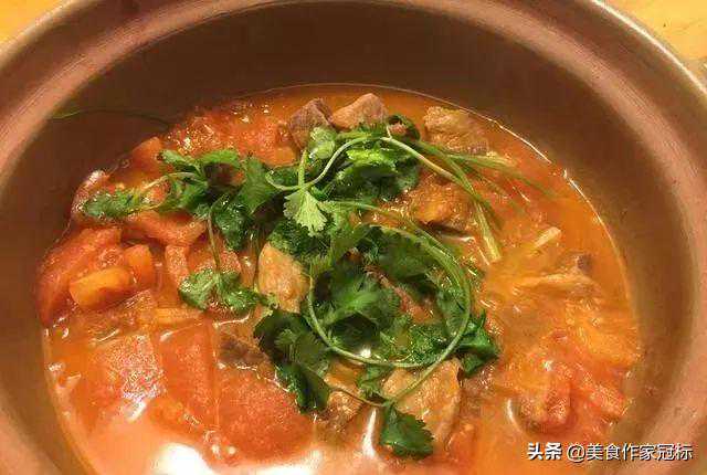 锅内加水,没过食材,老丁用的砂锅,也可以用高压锅,或者就是炒锅。加入盐调味,如果酸度不够,可以加入番茄酱。烧开后小火慢炖一个小时,然后加入大块西红柿,再炖半小时至牛肉软烂为止。