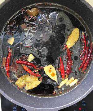 7、熬制好糖色后关火倒入足够淹没鸭掌的水(关火放水是为了防止水碰到热油会喷溅出来,大家不要偷懒切记关火等一小会后再放凉水哦)加水后开大火,依次加入准备好的干料和湿料
