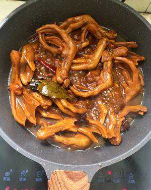 9、静静等待一小时过后,大火将鸭掌收汁,汤汁不用收太紧,可以多留一些,这样鸭掌会更入味。
