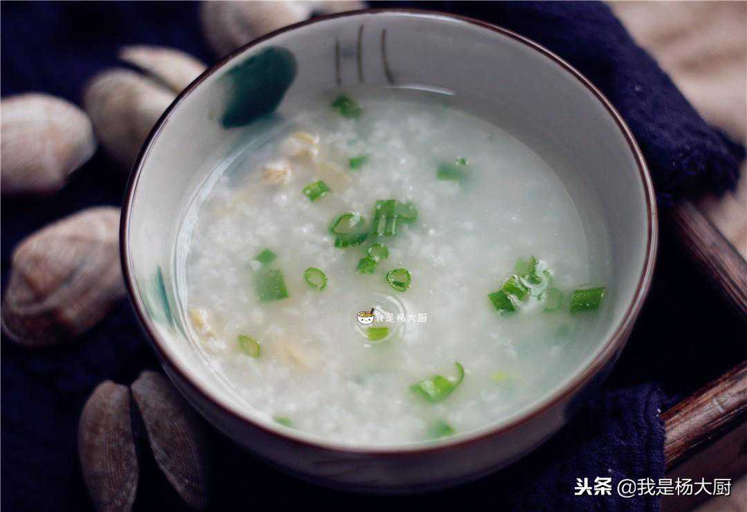 3.煮粥期间将花蛤用开水焯至完全张开口,水中可以加一些葱、姜、料酒去腥。