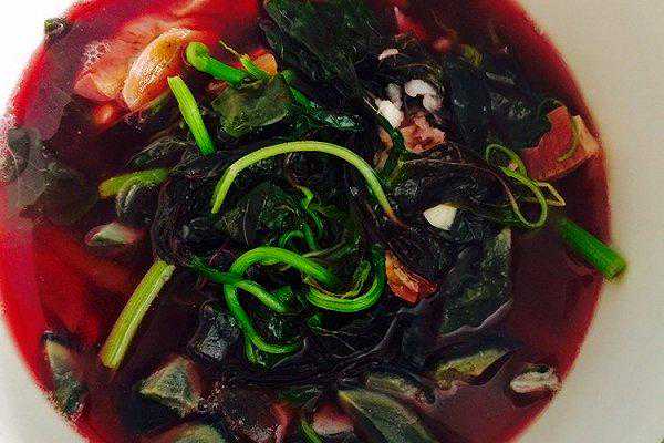 注意:用清水或上汤都可以,煮的时间不能太久,不然苋菜会吃起来很柴,汤汁也不要收得太干了。所以不喜欢用浓汤宝的人,也可以换成清水。