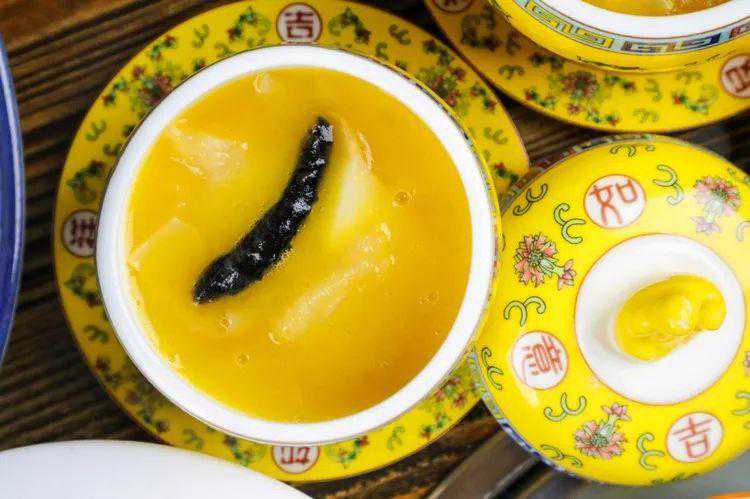 富有“海洋人参”之名的花胶,满满胶质,吃起来QQ弹弹。女生记得多吃几口,今晚的面膜就不用敷了。吸收了汤汁的海参,一口咬下又爽又脆,味道鲜美口感醇厚,美到不用开美颜。