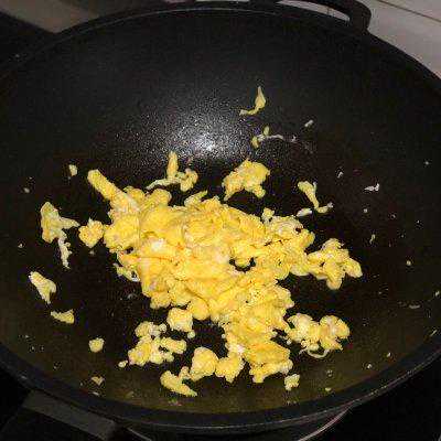 3、3.锅中倒油,倒入蛋液用筷子搅散,蛋液凝固即可关火,嫩嫩的才好吃