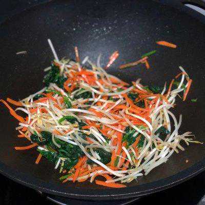 4、4.锅留底油,放入胡萝卜丝翻炒至变软
