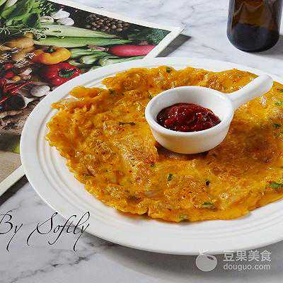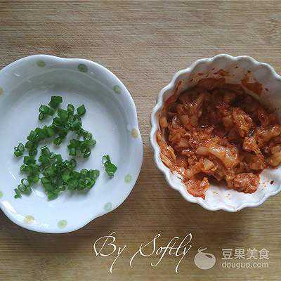 不知道大家有没有看过一部叫《一起用餐吧》的韩剧,现在已经出到了第三季了。之前还写了一篇文章来推荐这部剧给大家,因为这部剧真的是吃货必看,每次都被美食吸引了注意力,仿佛里面的剧情和人物都不重要了。前两季给我的感觉都是比较开心搞笑的,但是总觉得第三部有点悲伤的气氛——没错,男主又恢复单身了,网友们都笑称他一季换一个女友。不过这次不是因为分手,是因为女友出意外了……确实很伤感,连海报都是形单只影的,呜呜~好了,这部剧毕竟还是不错的,至少第三季的女主得到了广泛的好评——吃相比前两季的女主都好看!而她的能耐不只是好看而已,不但会做吃的,也很会吃,觉得男主可以变成“食神”,其实有一部分是女主的功劳吧!然后进入正题,今天教大家做的泡菜饼也是跟女主学的,她做吃的真的很让人出乎意料,很有“小心机”的说。泡菜饼做成中间空的甜甜圈的样子,可以增加边缘的位置,要知道,煎饼的边缘是特别酥脆啊。另外,还有个秘诀就是面糊的调配,女主用了煎饼粉和炸粉,比例是2:1,这样的煎饼,可以说是完美啊!因为家里没有煎饼粉,所以我就用了低筋面粉来代替,炸粉就是用那种韩式炸粉,应该普通超市里卖的炸粉也是可以的。
