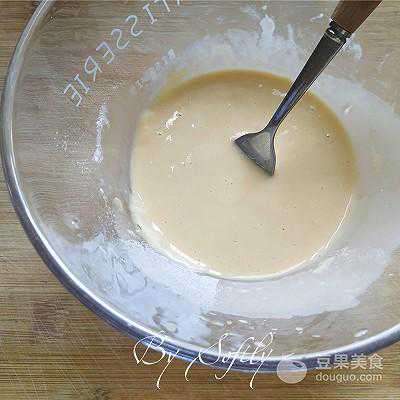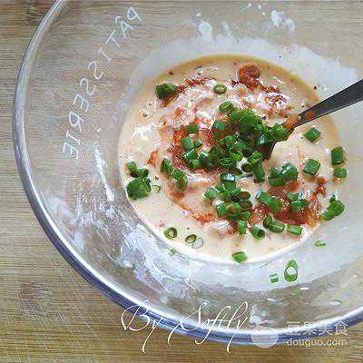 2、低筋面粉、韩式炸粉、鸡蛋、水、盐混合成均匀的面糊。