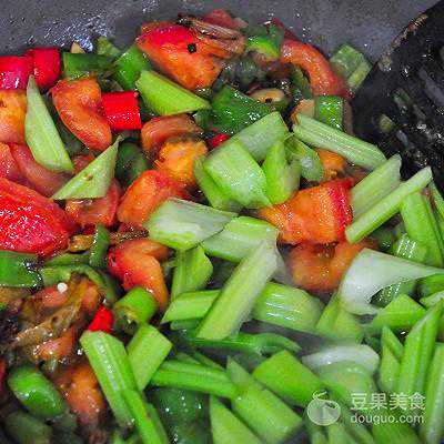 6、西芹斜切段,西红柿切块,不用特别小