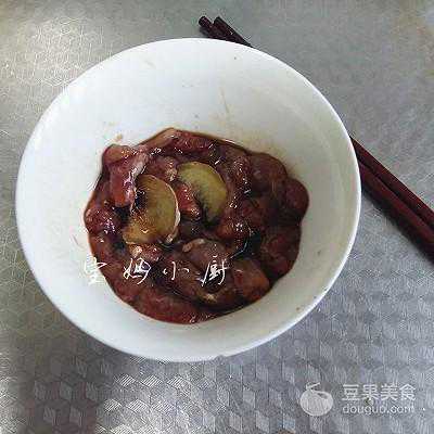 5、把肉用生抽、生姜、料酒拌匀,再拌入植物油