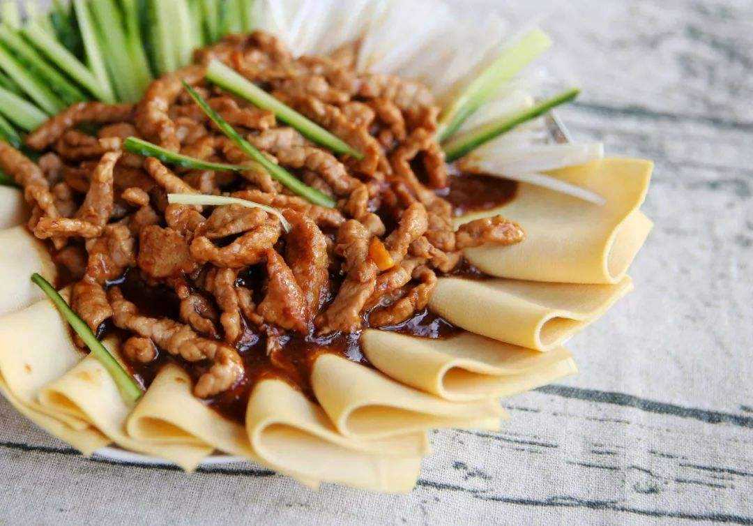 京酱肉丝是北京的传统美食,主要成分是猪肉、大葱和姜,当然必不可少的甜面酱。