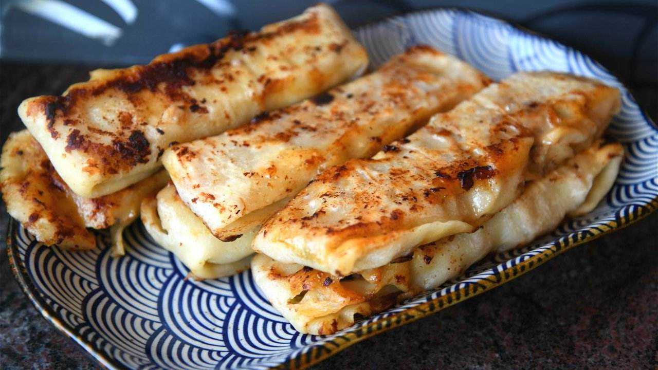 之所以叫“褡裢”,是因为火烧对折后很像过去的行李袋“褡裢”。火烧塞入馅料后在平底锅中煎至金黄色,趁热食用。