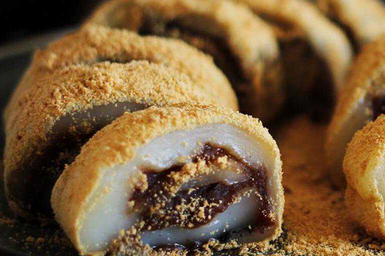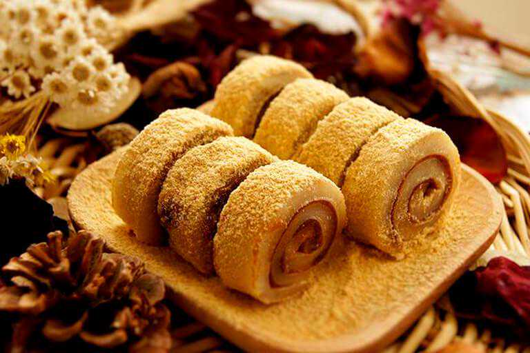 驴打滚吃起来软糯香甜,即便是牙口不好的老人也可以尝试。驴打滚颜色是淡黄色,就像驴打滚后蘸上灰土的形状,也是因此而得名。