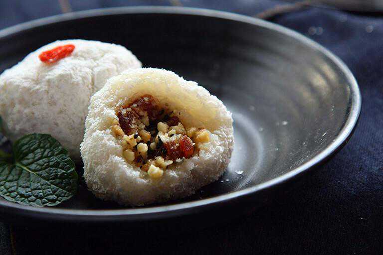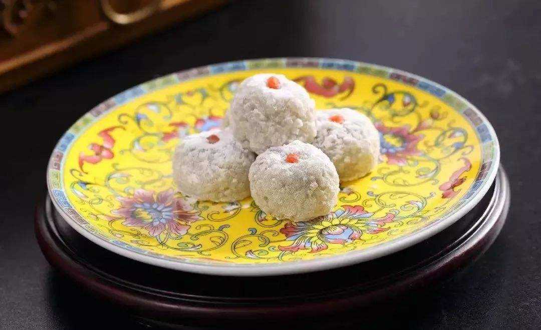 艾窝窝由糯米粉和面粉制成,里面的馅料很丰富,常见的有芝麻、核桃仁、瓜子仁、山药泥等等,为了美观,通常上面还会用山楂糕作点缀。据传,艾窝窝原是宫廷小吃,后来传入民间。