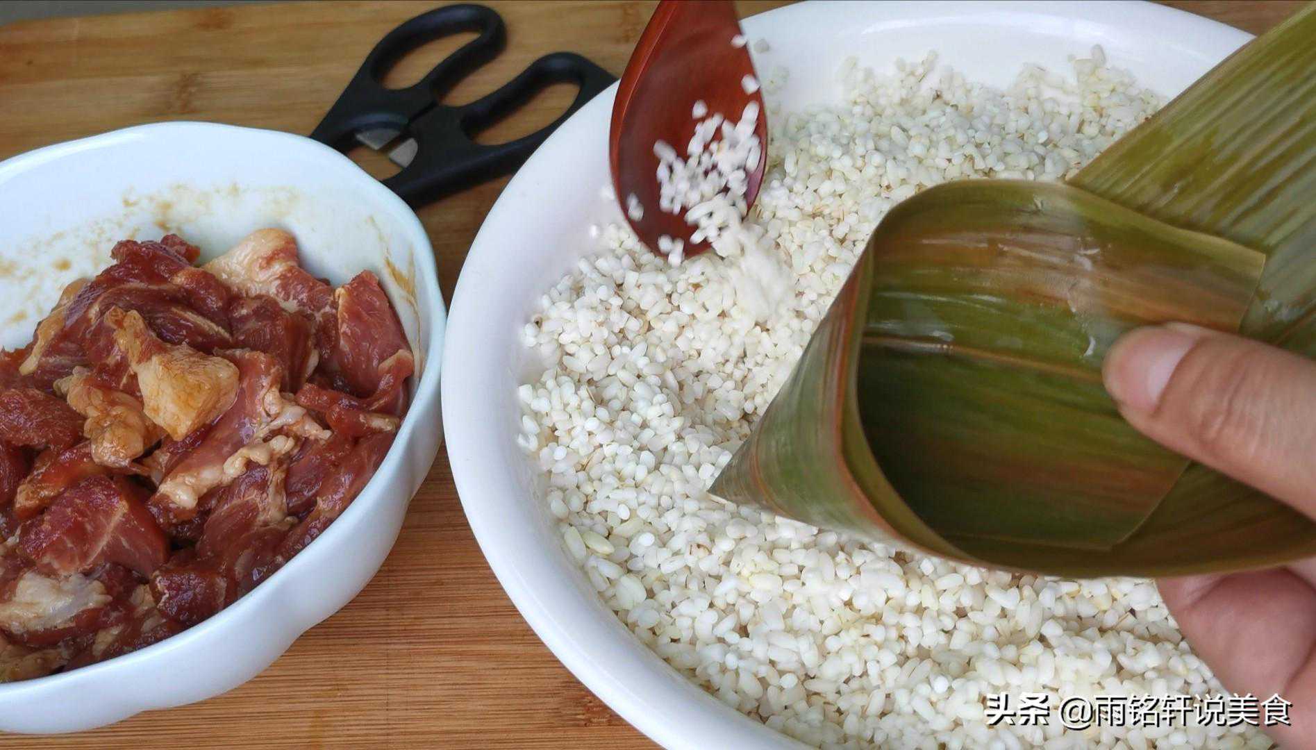 雨铭轩说:1糯米要提前浸泡4个小时以上,粽子要煮得久一些,放锅里一般煮一个小时再焖两个小时,这样煮出来的粽子才软糯。