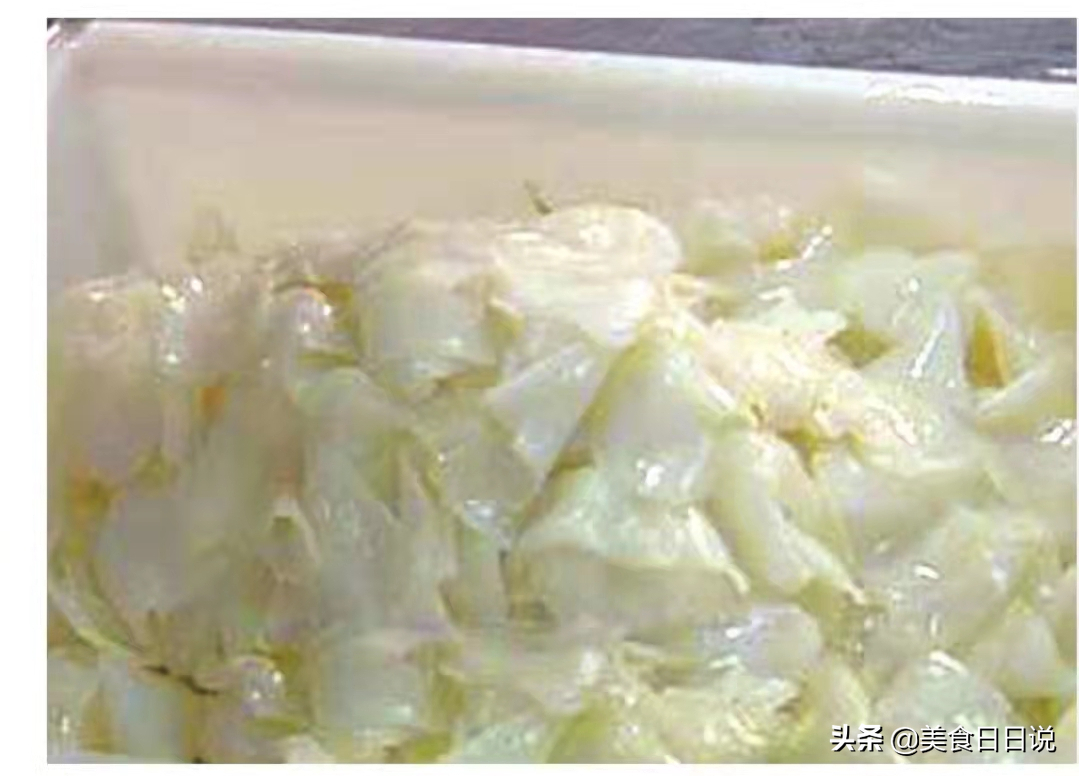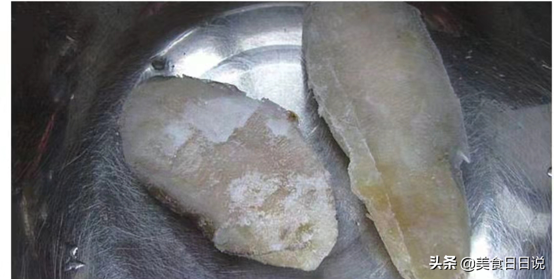 取出撕掉外皮,剥离成片状,用清水漂净异味。