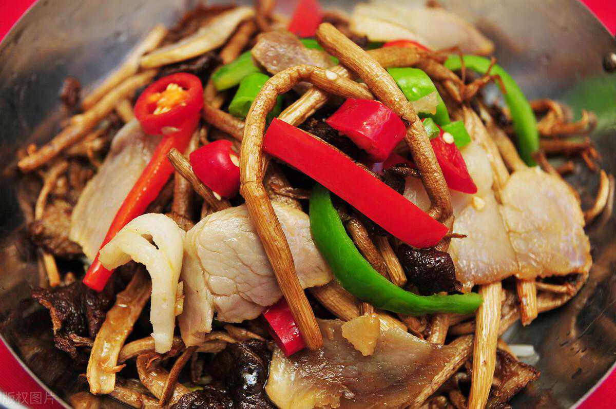 〖食材清单〗茶树菇、五花肉、姜蒜、青红辣椒、干辣椒、生抽、老抽、盐、鸡精