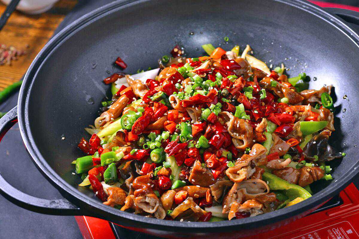 〖食材清单〗肥肠、青红辣椒、干辣椒、菜椒、花椒、大葱、姜、葱、芝麻