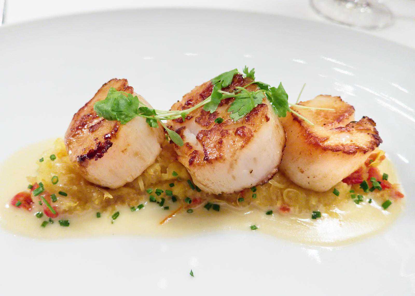 SearedScallops(香煎干贝):有时候会和Risotto(炖饭)组合在一起。干贝吃起来很优雅,而且普遍餐厅都做得很好吃,约会点它不会错。