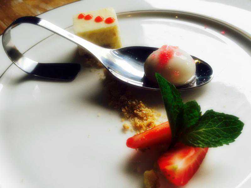市场上普遍很贵的分子料理,在这儿价格却让人惊喜。花椒与冰淇淋的意外搭配,看是八竿子都打不着的两样食材的绝美融合,法国进口的铁塔奶油,比市面上的冰淇淋奶油高出一倍的价格,换来的是不同于一般奶油的细腻、清淡的口感,加上鲜麻口味的花椒,撒上坚果碎,口味是在无法用言语来形容。