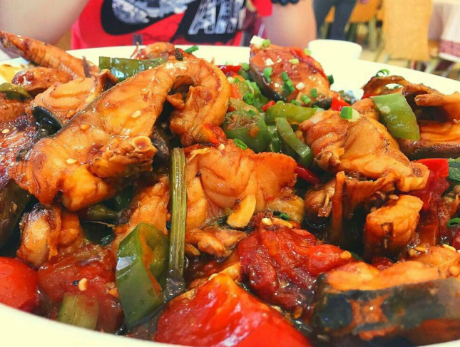 四:起锅继续烧油,下入10粒干辣椒节,炒至黑红色糊辣味出香时,下入7成熟的牛肉片,翻炒几下,加入切好的川芎小段,迅速翻炒均匀,起锅装盘散上香菜即可,