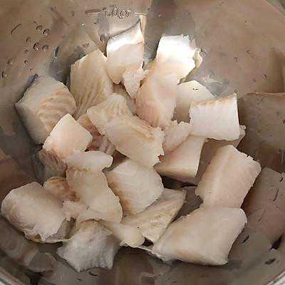 1、解冻的鱼洗净去皮捏去水分,切块放入搅拌机里。
