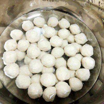 8、打出浮沫,煮到鱼丸都飘于水面上时鱼丸就熟了。