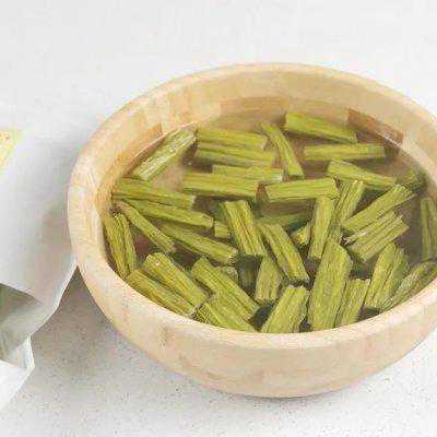 4、60克有机绿腐竹凉水浸泡至变软(采用非转基因有机双青豆,相比普通腐竹,拥有多重优质的蛋白含量及维生素,可谓药食兼备);