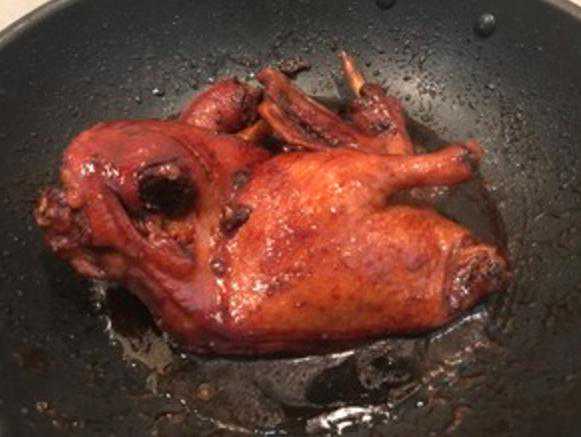 首先大火烧开,在转成中小火炖煮,在炖的过程中每隔20分钟给鸭子翻一下面,这样可以让汤汁均匀地给鸭子上色,不翻面的话,不仅容易糊锅,而且鸭子色泽也会不均匀。一直煮到汤汁变得浓稠之后,就可以关火了。