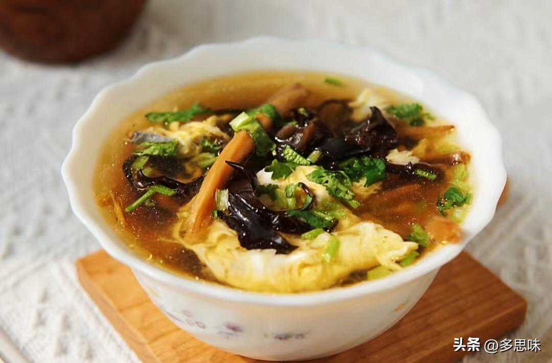3、湯鮮味美,黑木耳素有补心的功效,黃花菜既提鮮,又是山中美味,也可以加點白胡椒粉,寒冷的冬季,喝上一碗特別暖心。加点白胡椒粉,寒冷的冬季,喝上一碗特别暖心。